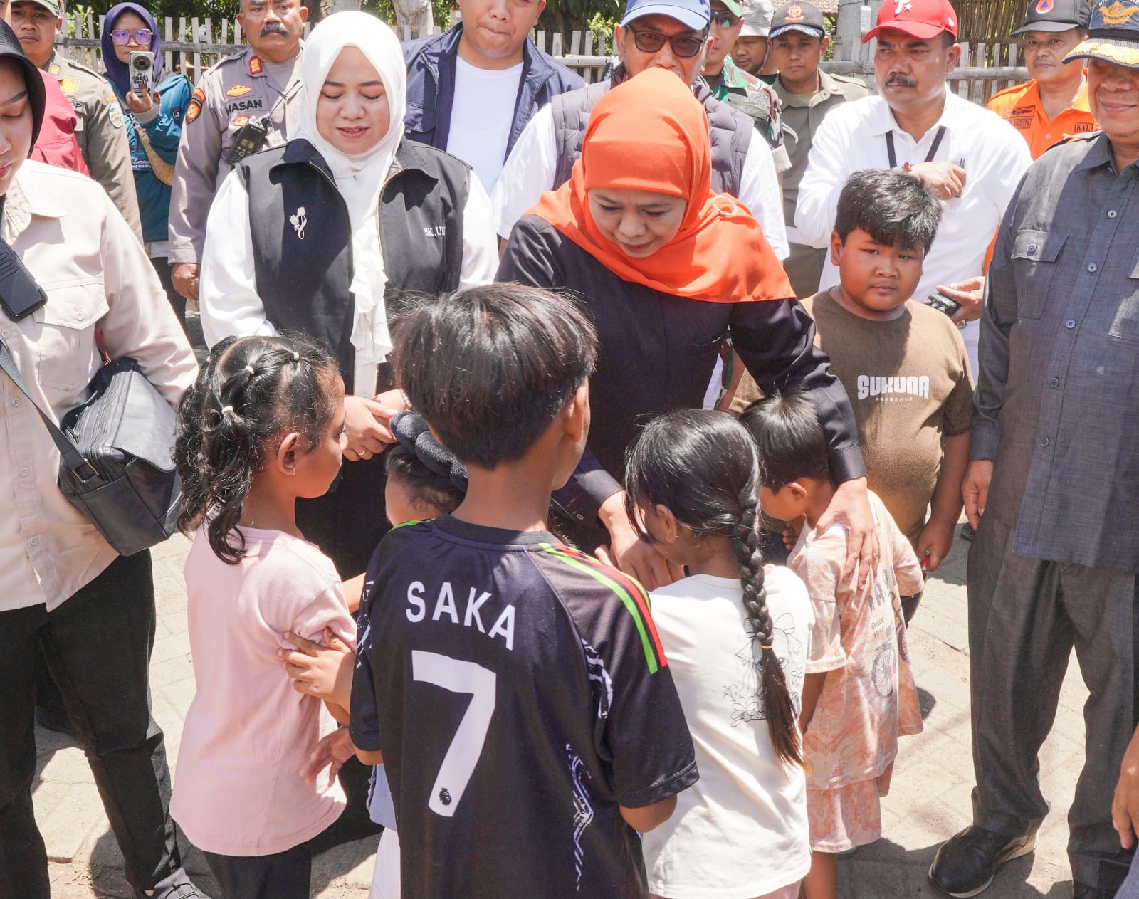 Gubernur Khofifah Indar Parawansa meninjau daerah terdampak gempa dan menyerahkan bantuan bagi korban gempa bumi di Desa Sumberwaru, Dusun Sidomulyo, Kecamatan Banyuputih, Kabupaten Situbondo, Sabtu (27/9).