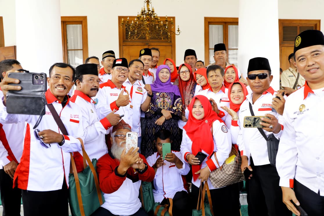 Gubernur Jawa Timur Khofifah Indar Parawansa menerima kunjungan 112 pengurus Asosiasi Badan Permusyawaratan Desa Nasional (ABPEDNAS) dari 20 Dewan Pimpinan Cabang (DPC) se-Jawa Timur di Halaman Gedung Negara Grahadi, Surabaya, Selasa (9/9).