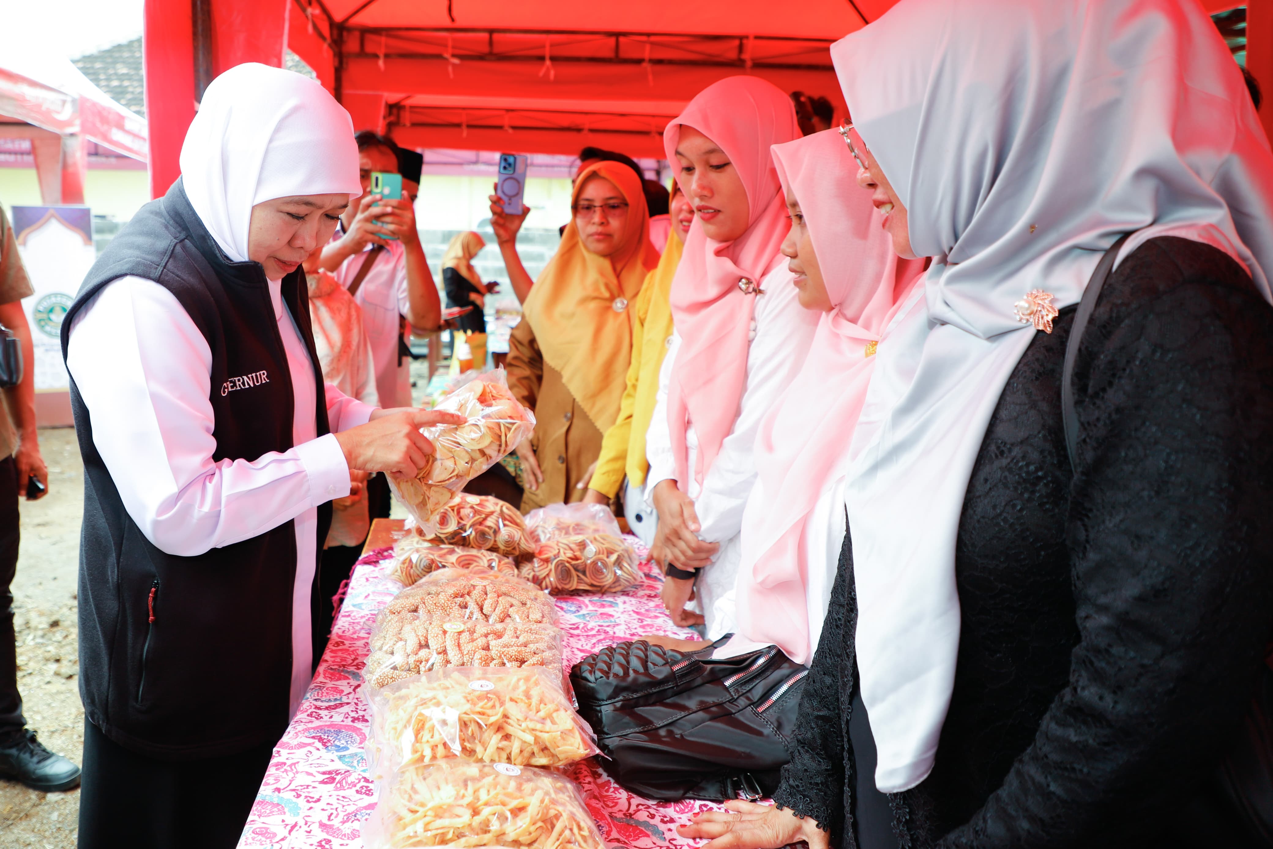 Didampingi Bupati Situbondo Yusuf Rio Wahyu Prayogo, Kadisperindag Jatim Iwan, Kepala Dinas Pertanian dan Ketahanan Pangan Jatim Heru Suseno dan Kapolres Situbondo AKBP Rezi Dharmawan, Gubernur Khofifah mengapresiasi masyarakat yang menyambut antusias gelaran pasar murah ini.