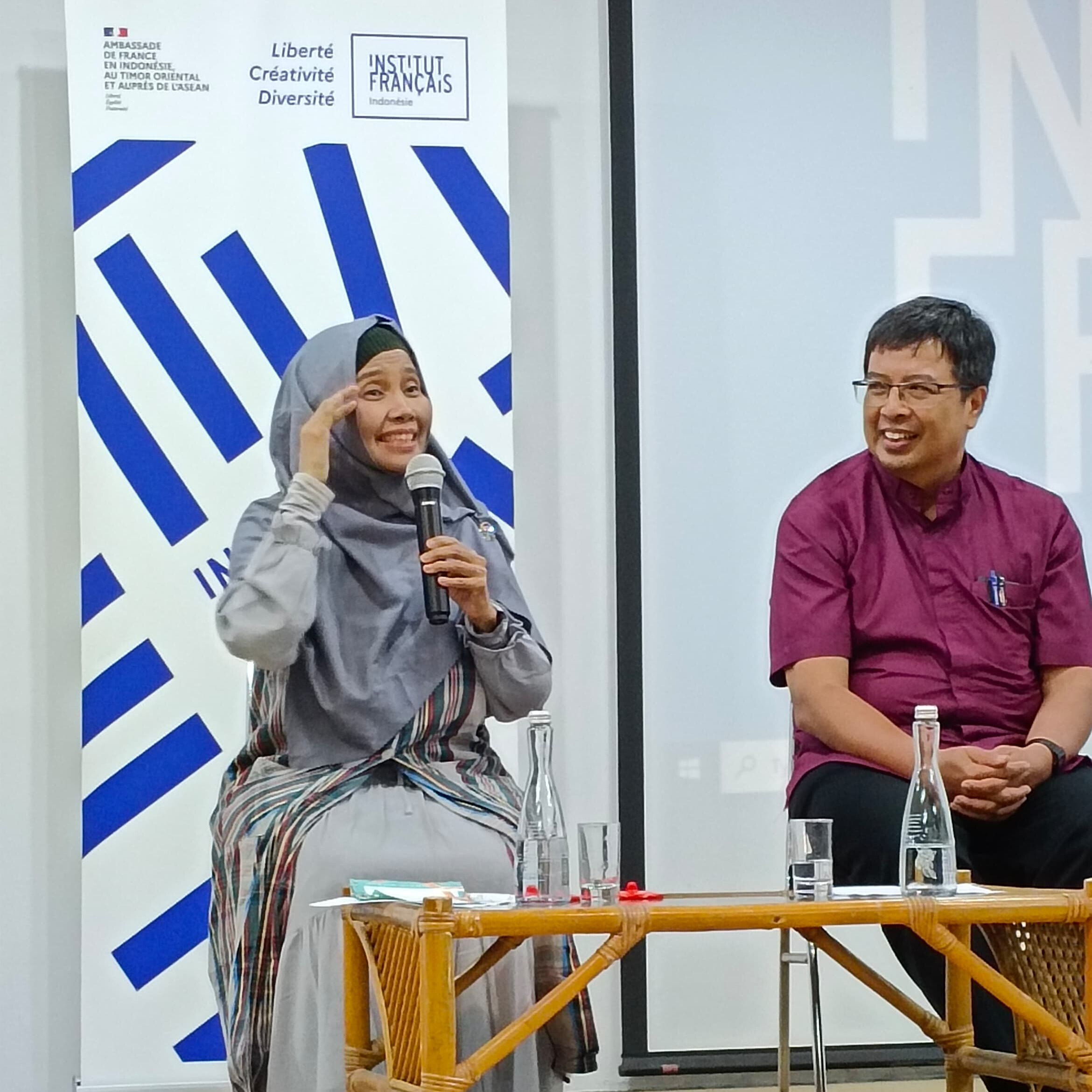 Diskusi berlangsung interaktif dengan peserta yang antusias mengajukan berbagai pertanyaan. Beberapa topik utama yang dibahas mencakup perbandingan sistem pendidikan Prancis dan Indonesia, tantangan guru pemula, serta bagaimana menciptakan lingkungan belajar yang kondusif.
