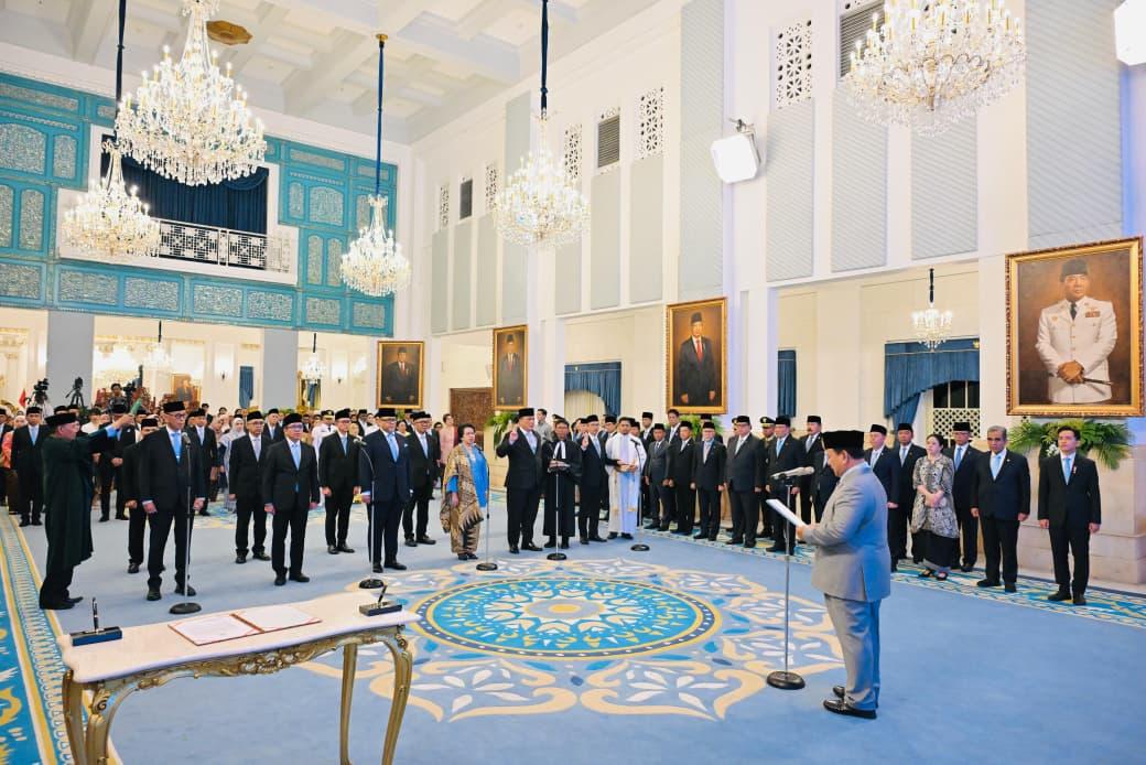 Dalam prosesi yang berlangsung khidmat, Presiden Prabowo Subianto memimpin langsung pengambilan sumpah jabatan para Dubes LBBP dan Wakil Dubes RI. Dengan suara tegas dan penuh wibawa, Presiden mendiktekan naskah sumpah jabatan yang diikuti secara serentak oleh seluruh Dubes dan Wakil Dubes.