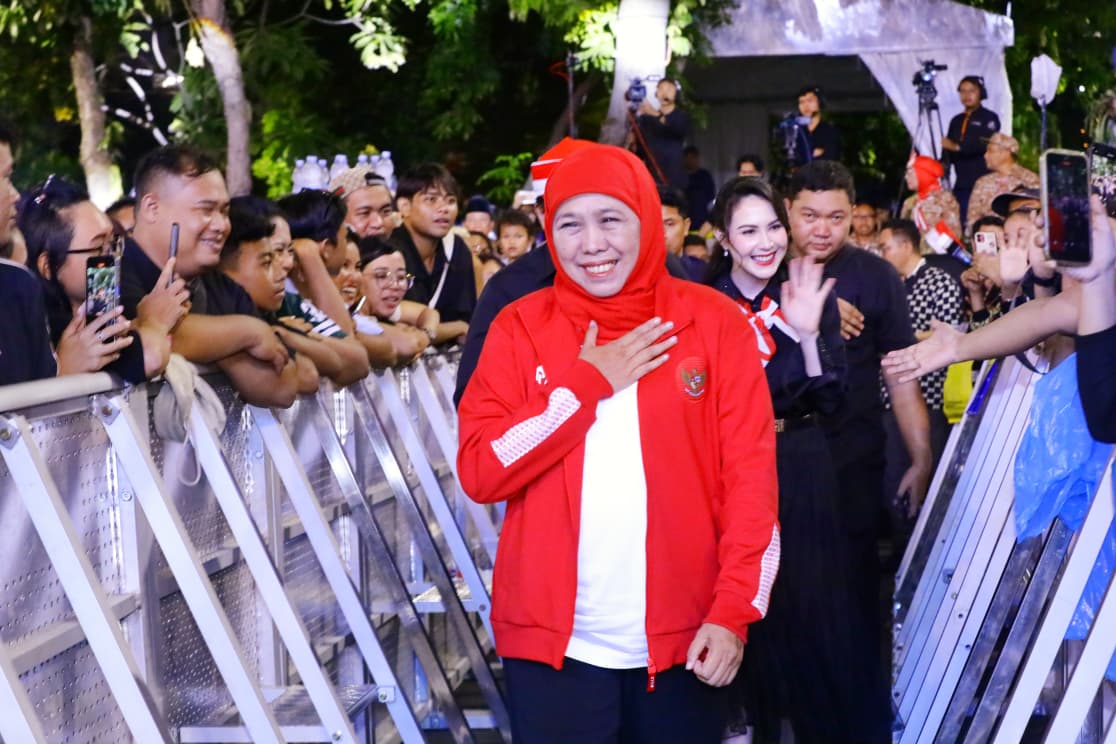 Gubernur Jawa Timur Khofifah Indar Parawansa menyampaikan bahwa semangat memperingati HUT ke-80 Kemerdekaan RI harus dirayakan dengan penuh sukacita, disertai dengan semangat menjaga persatuan dan kecintaan terhadap Negara Kesatuan Republik Indonesia.